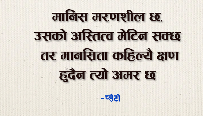 मानिस मरणशील छ, उसको अस्तित्व मेटिन सक्छ तर मानसिता कहिल्यै क्षण हुँदैन त्यो अमर छ । – प्लेटो